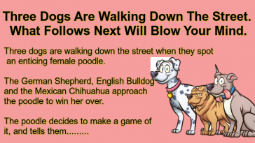 Three Dogs Are Walking Down The Street.