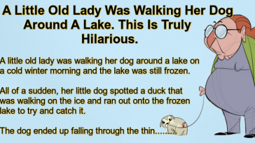 A Little Old Lady Was Walking Her Dog Around A Lake.
