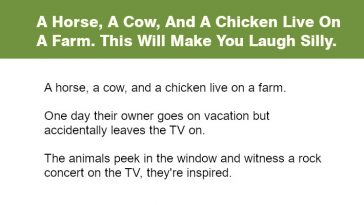 A Horse, A Cow, And A Chicken Live On A Farm.