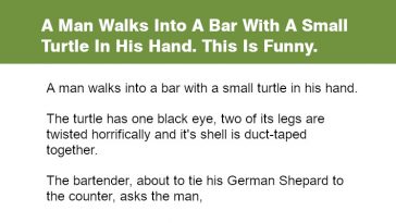 A Man Walks Into A Bar With A Small Turtle In His Hand.