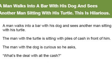 680 Shares AnimalsJokes A Man Walks Into A Bar With His Dog And Sees Another Man Sitting With His Turtle.