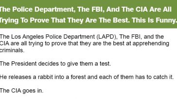 720 Shares AnimalsJokes The Police Department, The FBI, And The CIA Are All Trying To Prove That They Are The Best.