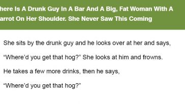 851 Shares AnimalsJokes There Is A Drunk Guy In A Bar And A Big, Fat Woman With A Parrot On Her Shoulder.