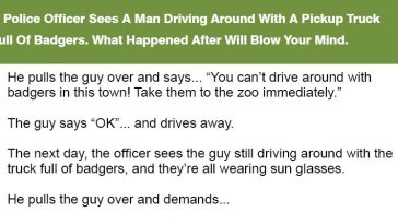 637 Shares AnimalsJokes A Police Officer Sees A Man Driving Around With A Pickup Truck Full Of Badgers.