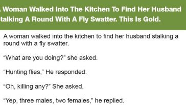 780 Shares AnimalsJokes A Woman Walked Into The Kitchen To Find Her Husband Stalking A Round With A Fly Swatter.