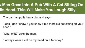 A Man Goes Into A Pub With A Cat Sitting On His Head.