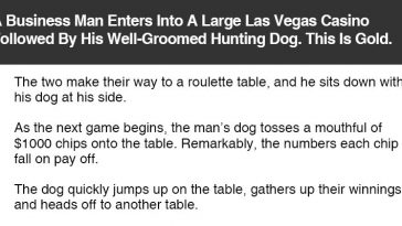 A Business Man Enters Into A Large Las Vegas Casino Followed By His Well-Groomed Hunting Dog.