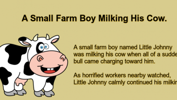 A Small Farm Boy Milking His Cow.