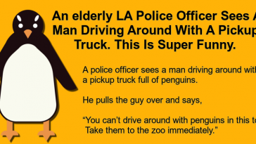 A Police Officer Sees A Man Driving Around With A Pickup Truck.
