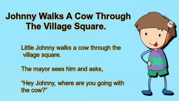 Johnny Walks A Cow Through The Village Square.