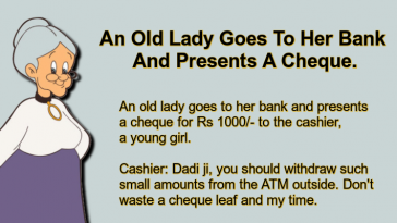 An Old Lady Goes To Her Bank And Presents A Cheque.