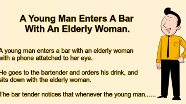 A Young Man Enters A Bar With An Elderly Woman.