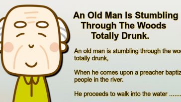 An Old Man Is Stumbling Through The Woods Totally Drunk.