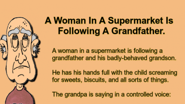 A Woman In A Supermarket Is Following A Grandfather.