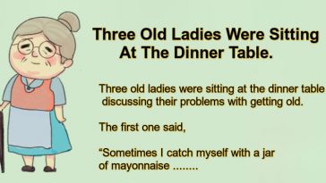 Three Old Ladies Were Sitting At The Dinner Table.