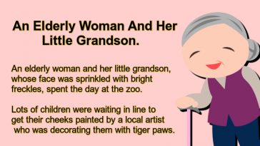 An Elderly Woman And Her Little Grandson.