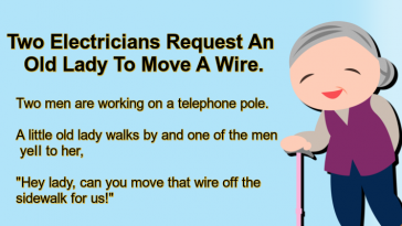 Two Electricians Request An Old Lady To Move A Wire.