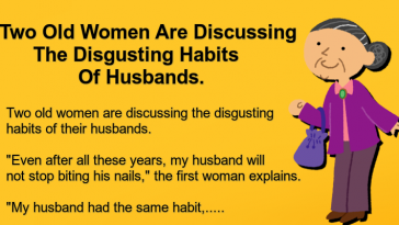 Two Old Women Are Discussing The Disgusting Habits Of Husbands.