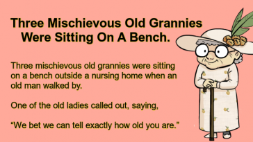 Three Mischievous Old Grannies Were Sitting On A Bench.