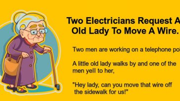 Two Electricians Request An Old Lady To Move A Wire.