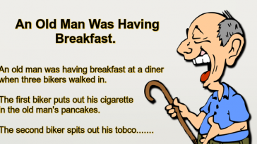 An Old Man Was Having Breakfast.
