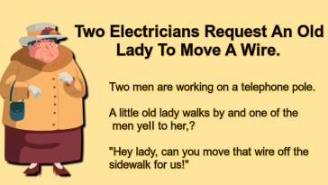 Two Electricians Request An Old Lady To Move A Wire.
