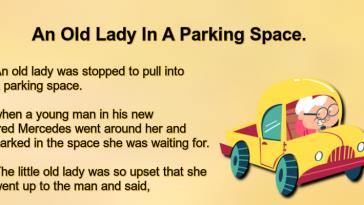 An Old Lady In A Parking Space.