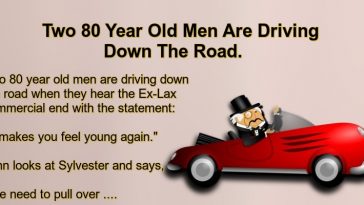 Two 80 Year Old Men Are Driving Down The Road.