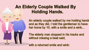 An Elderly Couple Walked By Holding Hands.