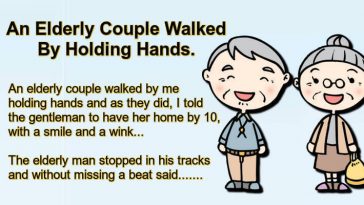 An Elderly Couple Walked By Holding Hands.