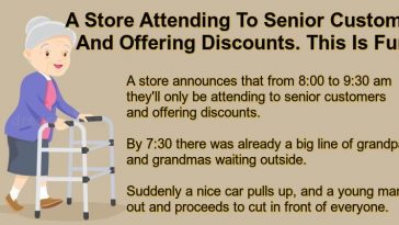 A Store Attending To Senior Customers And Offering Discounts.